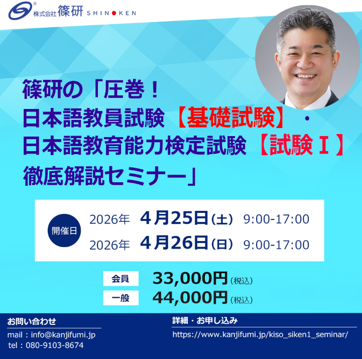 2日間のセミナーを通して日本語教員試験・日本語教育能力検定試験の基本的知識とスキルを伝授します。