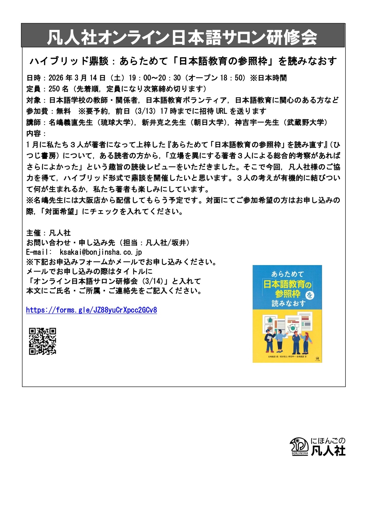お問い合わせ・お申し込み先(担当:凡人社/坂井)