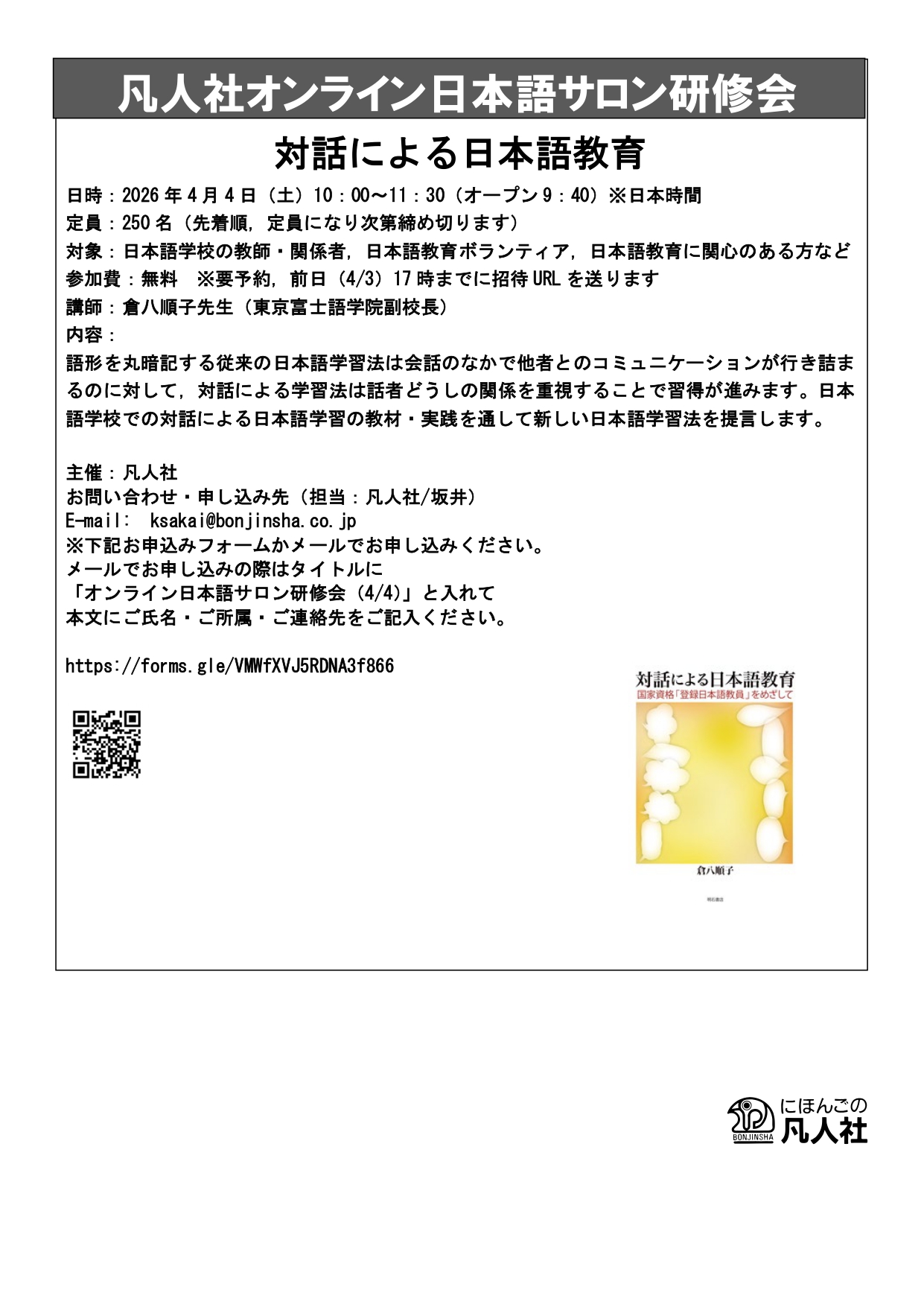 お問い合わせ・お申し込み先(担当:凡人社/坂井)