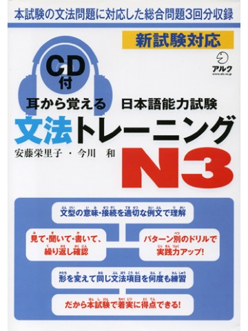 N3レベルの文法項目を網羅し、120項目に分けて配列しました。意味、接続、例文が書いてあり、N3レベルで必要な文法項目をマスターできるようになっています。付属CDで、聞く、書く、話すなど、さまざまな学習方法が可能です。