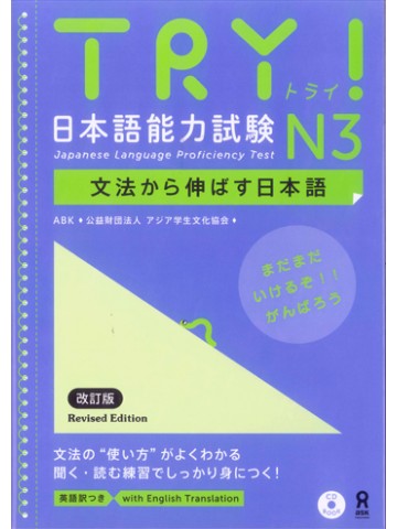 N3レベルの文法を整理し、適切に使いこなすことを目指すテキスト。基本練習に加え、日本語能力試験と同形式の問題があり、聴解や読解の練習、模擬試験もできる。文法を切り口に、いろいろな練習ができるお得な1冊。英訳付き。
