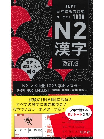 過去の試験問題を徹底分析し、合格に必要な漢字/単語を「出る順」に掲載しました。漢字の「筆順」、語句・例文の 3 ヶ国語翻訳も付いて、効率よく JLPT 対策ができます。巻頭ポスター・口絵、赤セルシート、確認テスト、音声(ダウンロード)付き